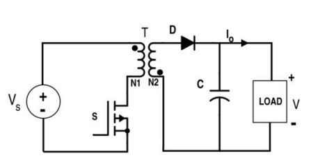 原理 :开关管与变压器原边串联,当开关管导通时,原边电流线性上升,能量储存在变压器磁芯中,负载由副边续流二极管和输出电容供电;当开关管截止时,原边电流切断,副边通过变压器的互感作用,将原边储存的能量传递给负载。
