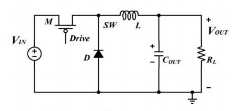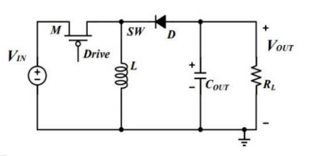 原理 :BUCK 变换器是降压式变换器,输出电压小于输入电压。当晶体管 M导通时,二极管D截止,电流经电感流向负载,电感储存电能;当 M断开时,二极管导通,电感释放磁能,为负载提供能量。输出电压平均值 Vo=Vi×D,其中 D 为 PWM 波的占空比。