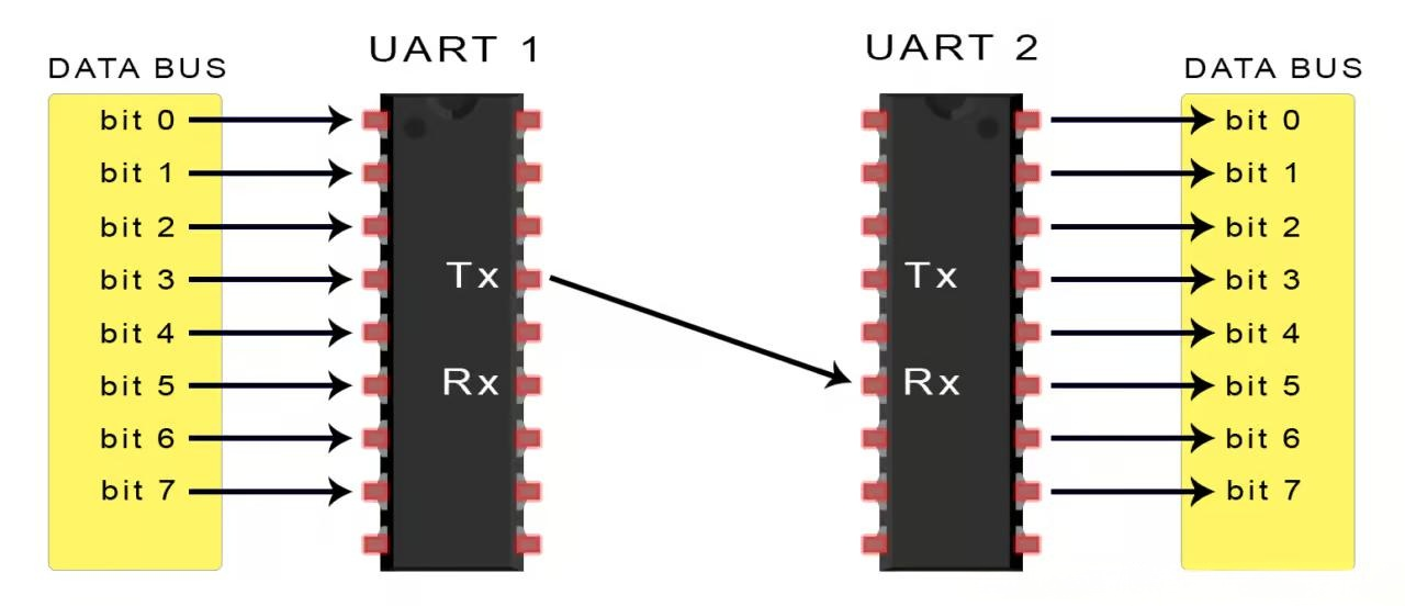 UART 是一种异步通信协议,没有公共的时钟信号,通过在数据的开始和结束处添加起始位和停止位来标识数据的传输。它通常有两个引脚:TX(数据发送)和 RX(数据接收),发送方将数据按照一定的波特率(数据传输速率)发送出去,接收方根据相同的波特率来接收数据。